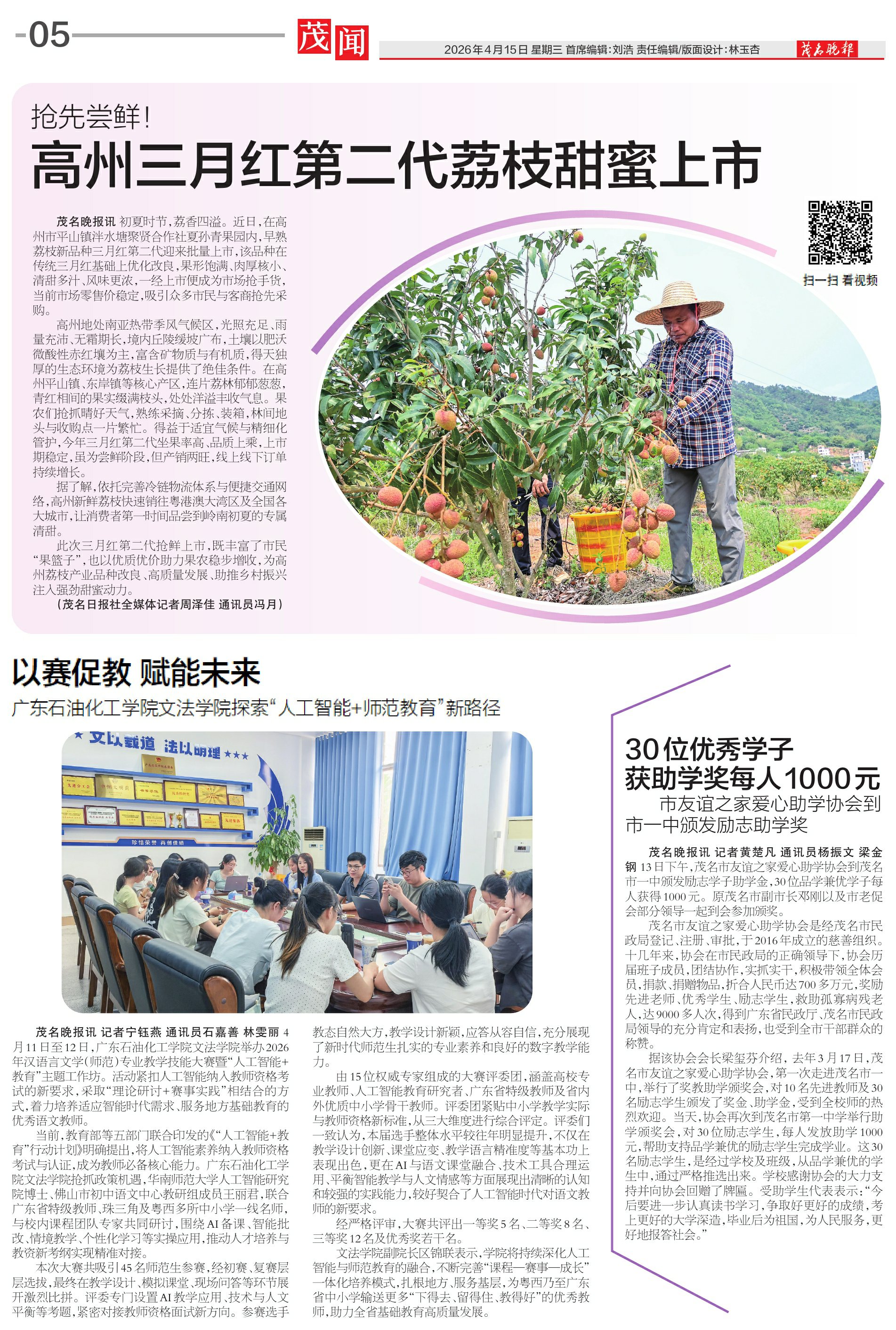 30位优秀学子获助学奖每人1000元