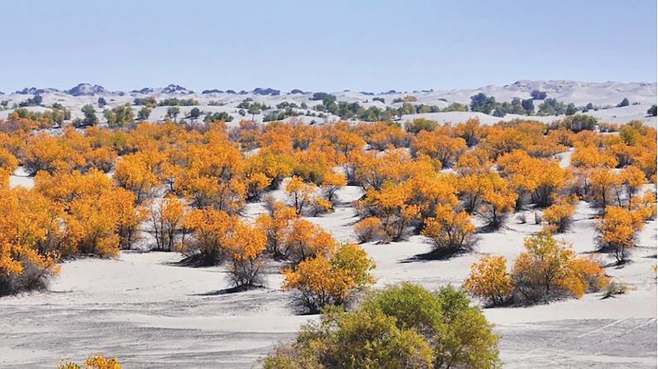 ▲胡杨被称为“生而不死一千年,死而不倒一千年,倒而不朽一千年”,是沙漠中最顽强的生命象征。