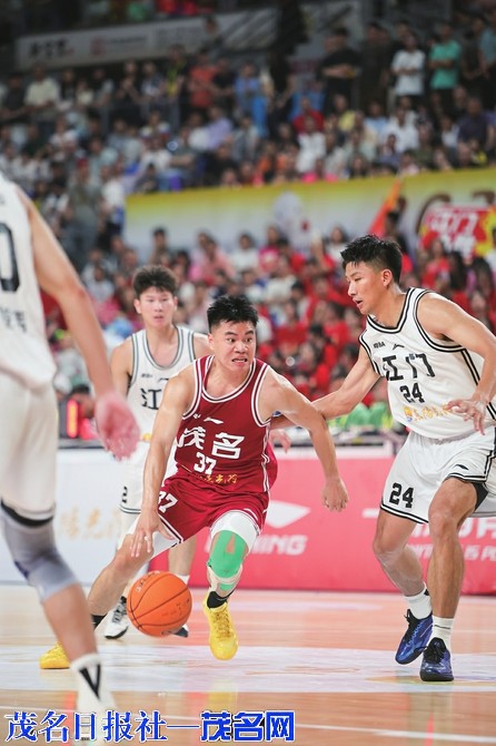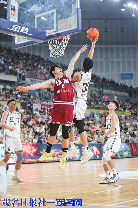 次节,两队火力全开,攻防对抗愈发激烈。茂名队19号球员率先冲击对手内线防守区,个人强攻打进一球,场上比分来到33比24。尽管江门队始终手握场上领先优势,但茂名队全队士气高昂、敢打敢拼,罗家裕、梁浩相继内线强攻得手,多点开花紧追不舍,将分差逐步迫近至35比29。随后,江门队外线手感全面回暖,进攻节奏流畅,26号球员外线连续命中三记三分球,瞬间拉开进攻差距,场上比分扩大至50比37。本节后半段,江门队防守动作偏大,连续出现战术犯规,茂名队抓住罚球机会,21号、37号球员先后站上罚球线,均两罚全中,稳稳收割。半场收官,场上比分锁定52比41。