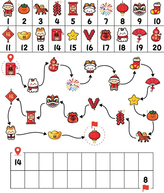 按路线的方向写出每个图形对应的数字。