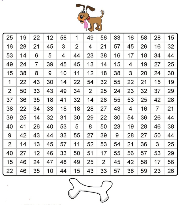 沿着“1”开头的数字路径帮助小狗找到他的骨头。