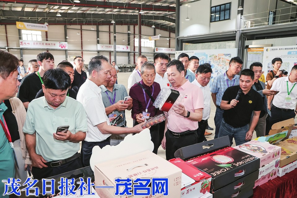 嘉宾到高州小蜂嗡嗡农业科技发展有限公司考察荔枝电商、供应链情况。茂名日报社全媒体记者 刘付思明 摄
