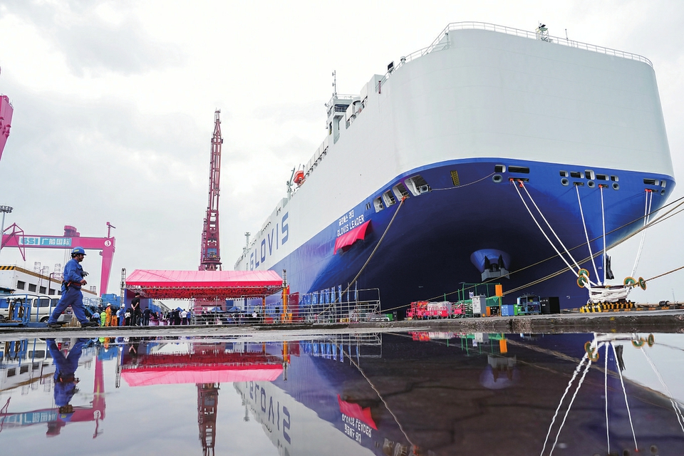 该船单船最大装车量达10800辆,刷新全球同类船舶运力纪录,标志着我国高端船舶制造能力实现新突破,为全球航运业绿色低碳转型提供了“中国方案”。