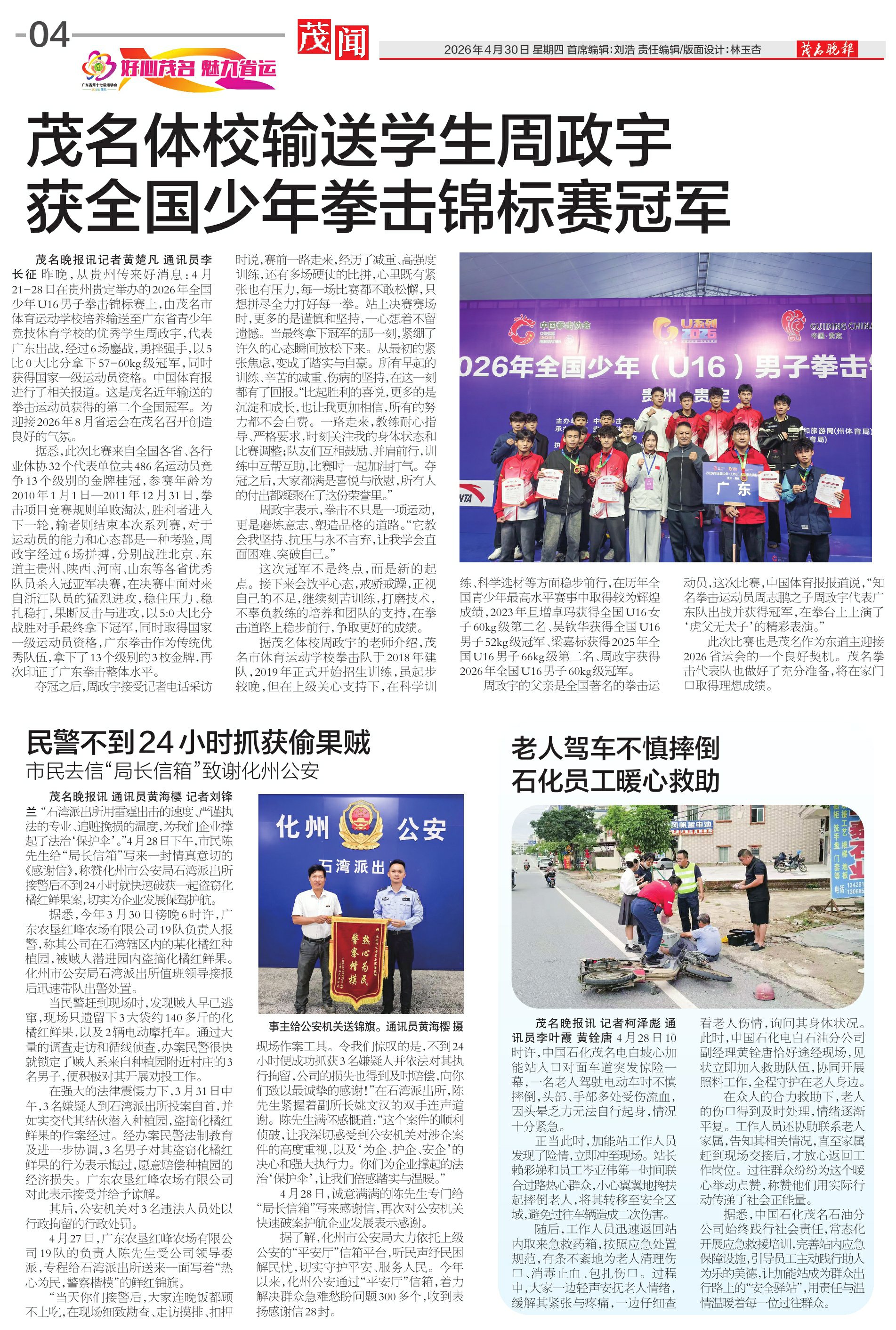 茂名体校输送学生周政宇获全国少年拳击锦标赛冠军