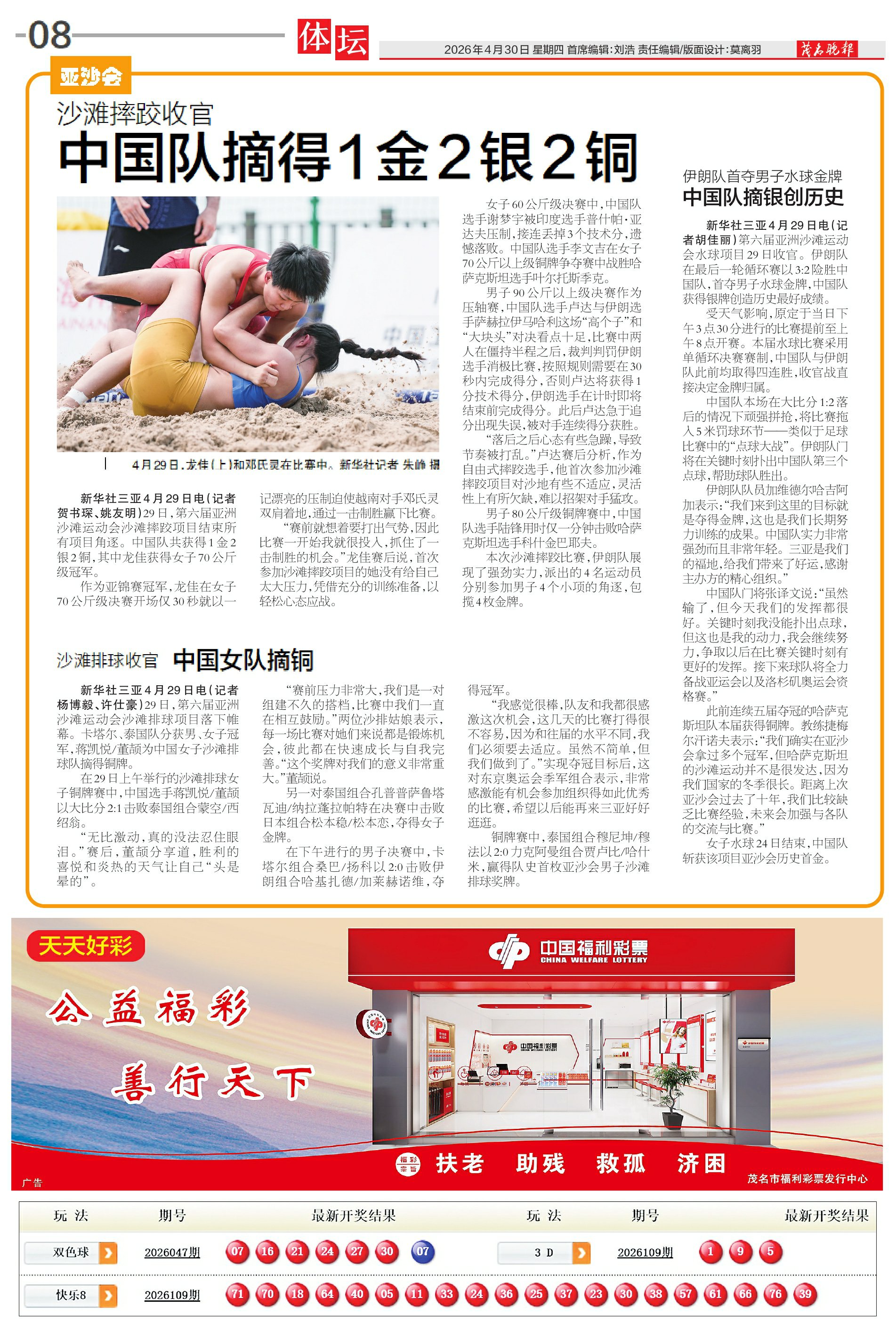沙滩摔跤收官 中国队摘得1金2银2铜