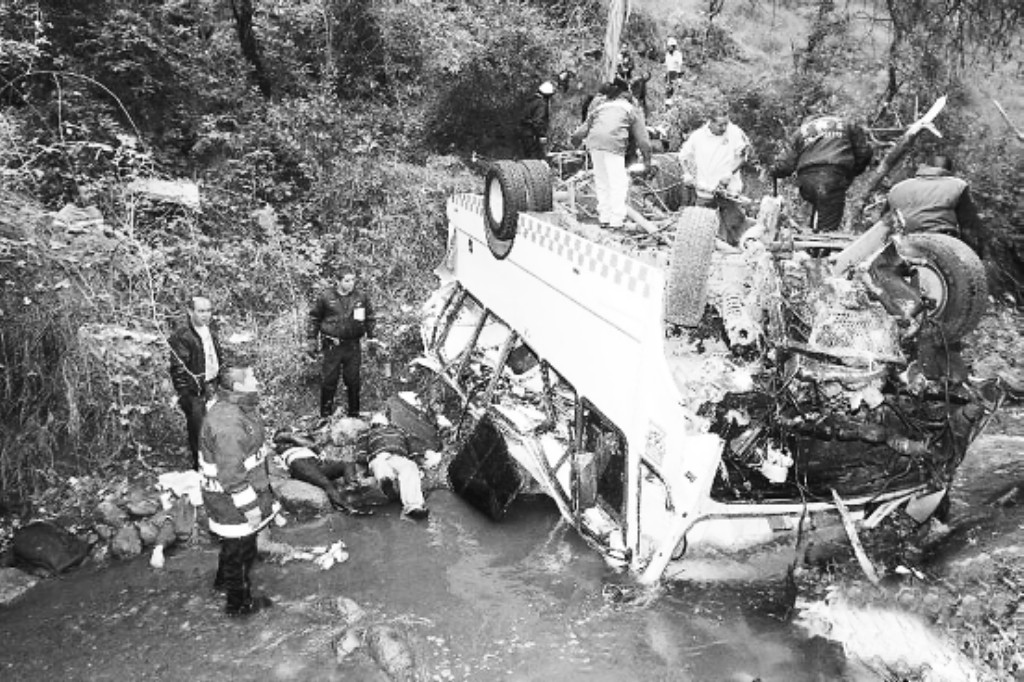 10月24日,在墨西哥中部墨西哥州的威斯基鲁康市,消防队员、警察和救护人员在客车坠崖事故现场搜救。据当地媒体报道,24日,一辆公交客车掉下20米高的山崖,造成10人死亡,17人受伤。 新华社/法新