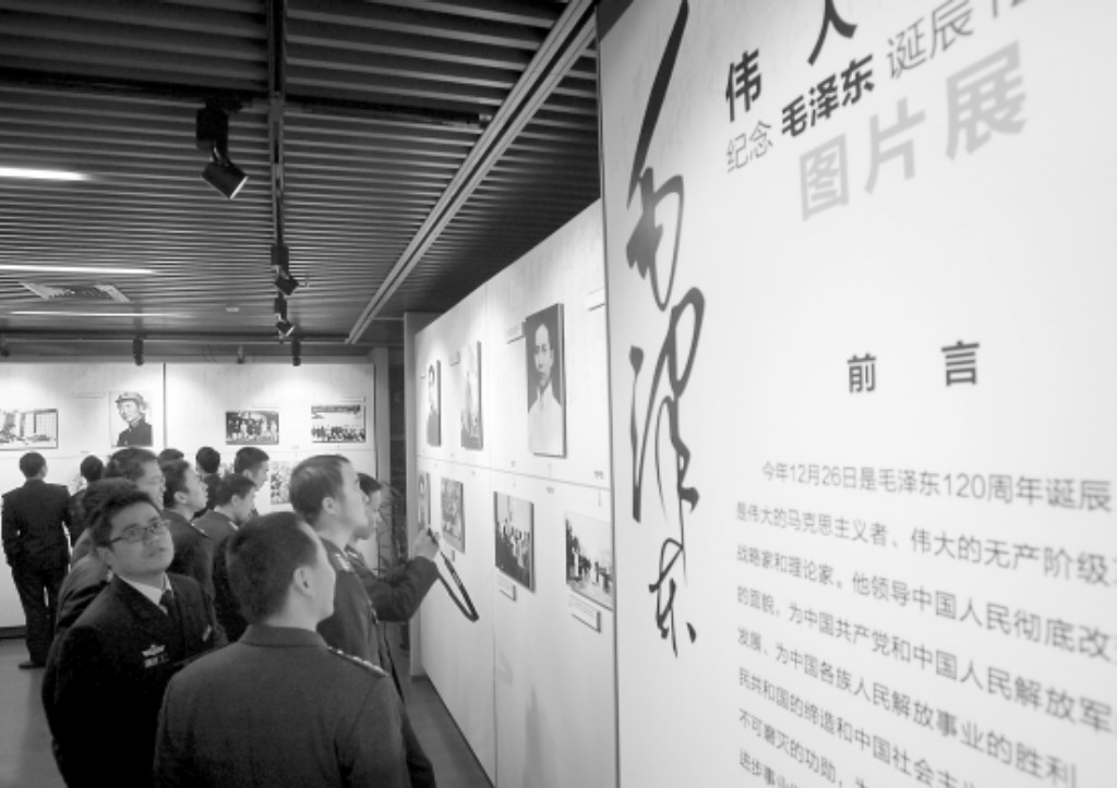 12月25日,参观者在上海中共“一大”会址观看图片展。 当日,“伟人风采——纪念毛泽东诞辰120周年图片展”在上海中共“一大”会址纪念馆开幕。此次展览共展出具有代表性的图片120幅,让参观者领略毛泽东一生中各个阶段、各个方面的风采。新华社记者刘颖摄