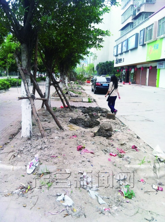 本报讯 近日,记者在市区西粤中路看到附近的绿化花坛损坏严重,有多个花坛边缘的砖块已经缺失,希望相关部门关注。 在西粤中路一洗车场门前,多个花坛遭损坏。花坛水泥块边缺失,泥土松散在花坛边缘外,花坛内无任何花草、绿化等,满是丢弃的垃圾、啤酒瓶子。与附近宽阔的街道、崭新的楼盘相比显得格外不雅。希望相关部门能在美化环境时不留死角,别让花坛无花而空置。 本报记者于双利摄影报道