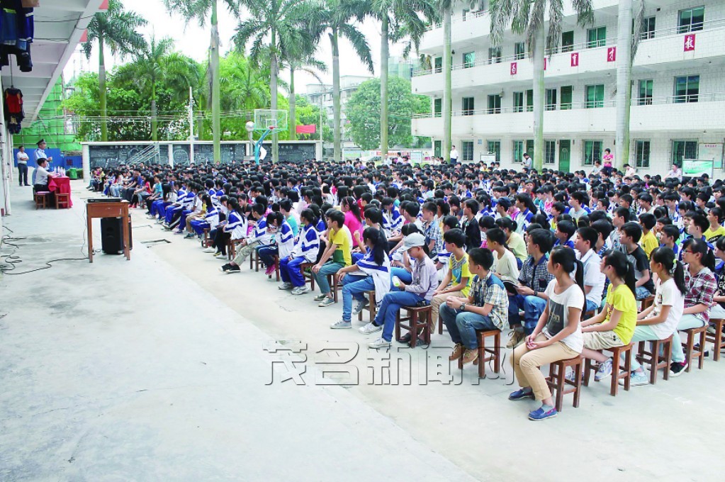 ■文/图 通讯员杨振文 记者张伍 本报讯 位于区金塘镇的茂名市第七中学十分重视学生德育工作,多年以来,一直定期不定期地对广大学生进行思想法制方面的专题讲座,始终把培养学生良好的思想道德情操当作是重要政治任务来抓,得到了上级领导和社会各界的肯定和赞扬。日前,该校特别邀请茂南公安分局公共关系中队副中队长林勇进行思想法制专题讲座,全校1100多名师生现场聆听。 林勇针对学生思想状况,从党 的十八大提出实现中华民族伟大复兴的“中国梦”讲起,阐明强党、强军,强国,富民,无不需要新时代的精英,强调祖国命运和个人命运息息相关,勉励学生从小树立远大人生理想,珍惜基础教育学习机会。接着列举发生在茂名市区某中学的一个典型案例,指出加强学生思想道德修养,遵纪守法的重要性。演讲过程理论联系实际,形象生动,深入浅出,绘声绘色。中间还穿插了与学生进行互动,畅谈感想,场面气氛融洽,台上台下遥相呼应,深受广大师生好评。