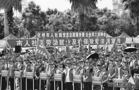 近日,化州市人社局在该市康景体育馆广场举办“党员志愿服务暨企业用工”招聘会活动。据统计,本次招聘会共组织了24家企业进场招聘,提供了526个就业岗位,吸引过千人前来应聘,最终与企业达成就业意向的有160多人。党员志愿者发挥先锋模范作用,大力宣传劳动就业及社保政策法规,热情为广大求职者提供咨询服务,积极牵线搭桥促进就业。 图为活动现场。 余玉明翁君如摄