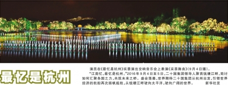 “江南忆,最忆是杭州。”西湖之畔,千年古都的历史底蕴、创新创业的时代活力,东道主同与会嘉宾谋划发展的忙碌身影,《高山流水》与《欢乐颂》的美妙之音,汇成激荡梦想与希望的美好时光,凝聚弥足珍贵的前行力量。把杭州记忆深藏在心中,让杭州共识变成扎实行动,让我们携手开启世界经济的崭新航程,共同奔向人类繁荣发展的光明未来。