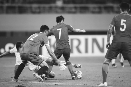战至第71分钟,中国队错过得分良机。张稀哲直传将球渗透入伊朗禁区,武磊已形成面对门将的单刀势头,但武磊脚步动作未能调整好,被已倒地的后卫与门将协力将球拦截。此后伊朗队通过逼抢与快速冲击又令比赛回到均势对峙局面。