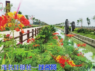 村道旁水渠边鲜花盛开的茂南区金塘镇乡村景色。茂名日报社全媒体记者丘立贺摄