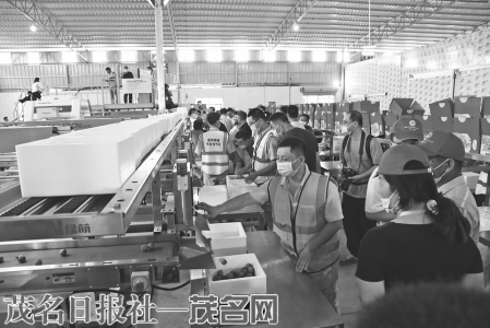 宾客参观田头小站的荔枝自动化加工包装流水线。茂名日报社全媒体记者黎雄摄