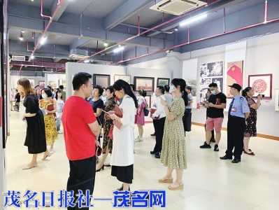 现场不少书画家、市民前来观展。茂名日报社全媒体记者潘宇丽摄■茂名日报社全媒体记者潘宇丽