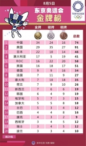 8月5日东京奥运会金牌榜