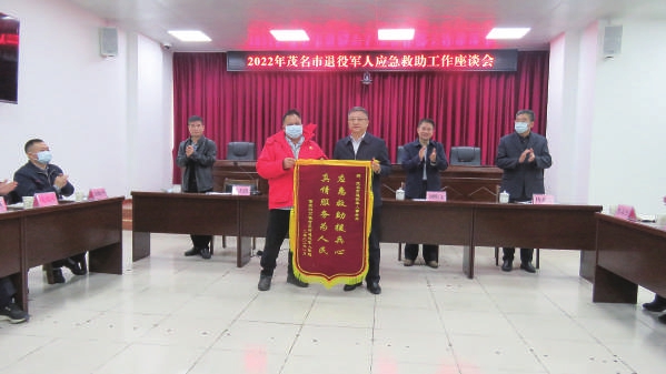 在1月17日召开的茂名市退役军人应急救助工作座谈会上,信宜市白石镇退役军人张超向茂名市退役军人事务局送上了“应急救助援兵心真情服务为人民”的锦旗,患有急性心肌梗塞的他,前几天收到了13077.94元的救助资金;不幸患上白血病的柯亚权激动地回忆:“为了治病,家里已经债台高筑倾家荡产,在走投无路的时候,市退役军人事务局救助了我。”家庭遭遇重大变故的葛伟其感慨:“救助金的到来缓解了压力,点燃了希望”……不止是这些,每一面锦旗、每一次回访、甚至每见一面,老兵们都表达着自己对党和政府的感激之情,“许多老兵每次来我们服务站都会拉着我的手说感谢的话,泪珠在眼眶里打转。”电城镇退役军人服务站工作人员杨小雪感动地说。
