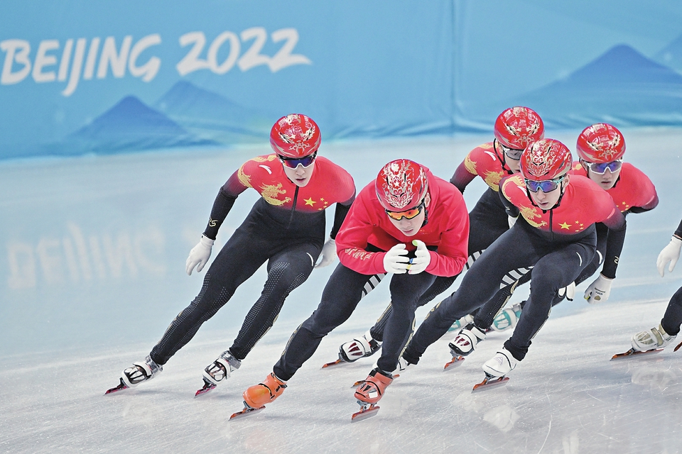 1月30日,运动员在短道速滑训练中。当日,中国短道速滑队亮相首都体育馆,参加赛前训练。 新华社记者杨磊摄