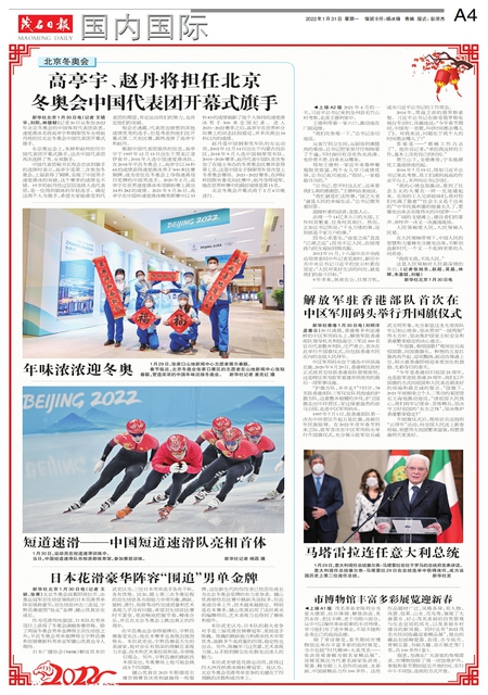 高亭宇、赵丹将担任北京冬奥会中国代表团开幕式旗手