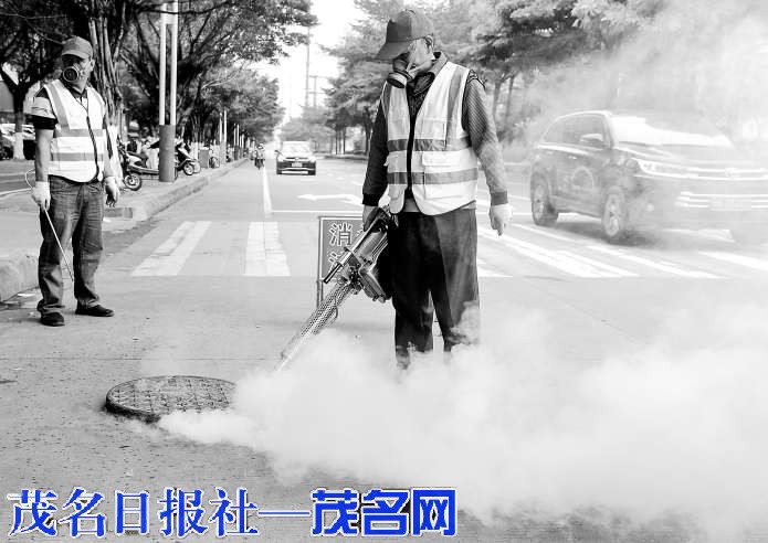 昨日上午,记者在市区西粤中路看到,工作人员拿着热雾机对花基草丛、水道沟渠等喷施灭蚊药剂,彻底清除蚊虫孳生地,营造良好的卫生环境。