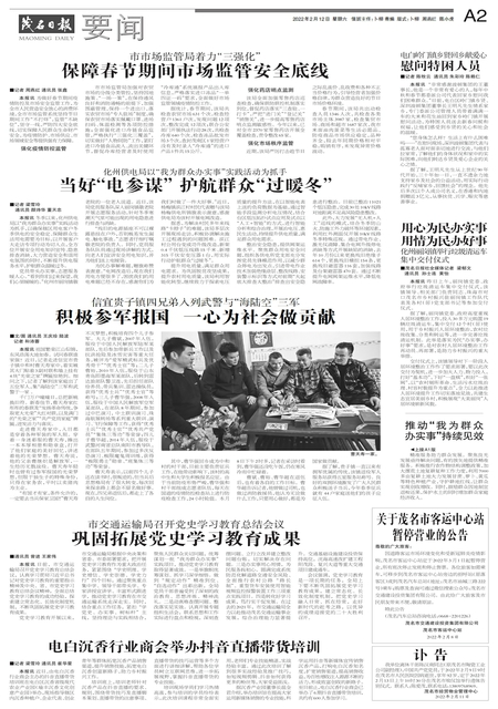 其中,曹华强回乡成为中和村的村干部,目前主要负责征兵工作,在他带动影响下,该村的高中生和大学生积极报名应征。由于当前防疫形势严峻,曹华强和村干部组成志愿者队伍,每天在国道的疫情防控检查站上进行防疫检查工作,24小时轮值。本月8日下午2时多,记者在采访时看到,曹华强还没吃午饭,仍在寒风冷雨中忙碌着。