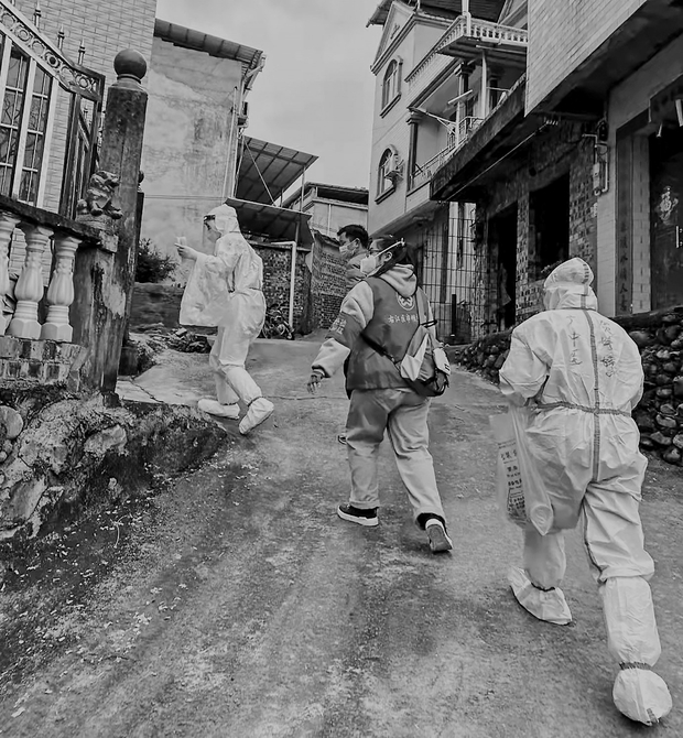 来自广西中医药大学第一附属医院的医务人员在百色市右江区永乐镇进村入户为村民做核酸采样(2月9日摄)。