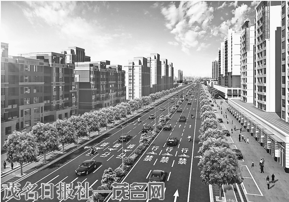 大图为高凉南路(新福路至站北路段)设计效果图,左上小图为建设施工现场。茂名日报社全媒体记者黄信涛摄