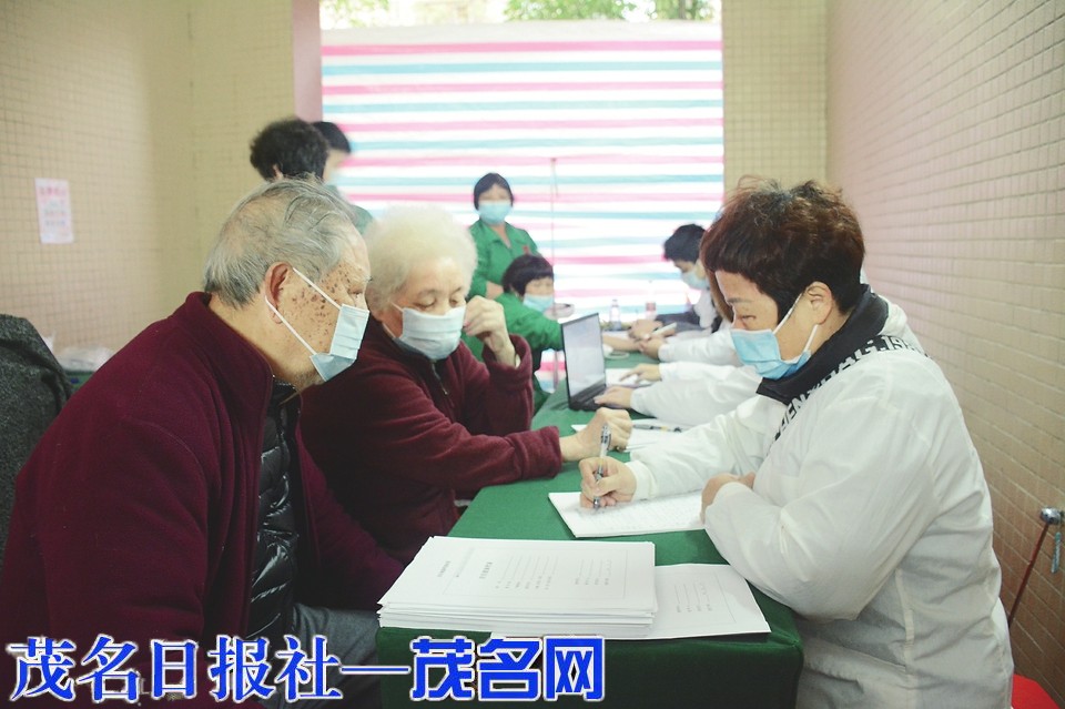 本报讯 为构筑全民免疫屏障,保障人民群众生命安全和身体健康,2月19日,电白区再次启动了新冠病毒疫苗下乡巡回接种大行动和开展基本公共卫生服务。连日来,医务人员、志愿者及相关人员顶着寒流,冒着风雨,把暖心服务送到群众“家门口”,先后到怡景湾、安泰华府等小区为三周岁以上适合接种的人群接种新冠疫苗,为年龄大、出行不便的老人免费体检(如图)。