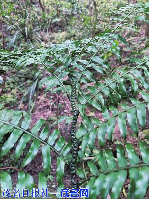 老彭和杨大叔在双髻岭发现不少珍稀的紫纹兜兰、虎颜花、桫椤、金毛狗蕨和观音座蕨等。他们感觉这些年,茂名保护自然环境越来越好,生物多样性保护越来越出色。