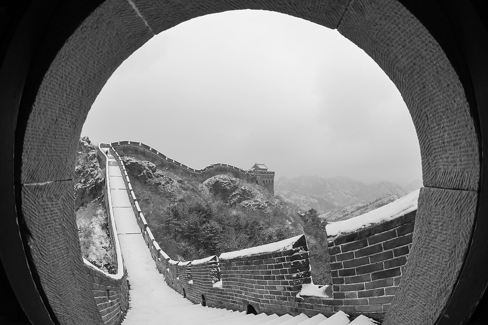 3月18日拍摄的河北滦平金山岭长城雪景。当日,河北迎来降雪。皑皑白雪覆盖长城内外,景色壮美。 新华社发(周万平摄)