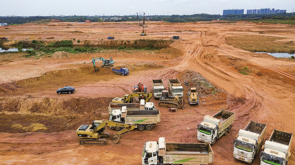 茂名奥体中心全面开工建设,各类施工车辆忙碌作业。茂名日报社全媒体记者丘立贺摄