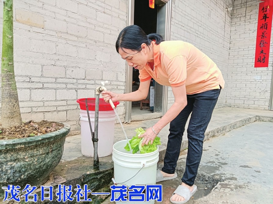群众用清澈自来水洗菜。