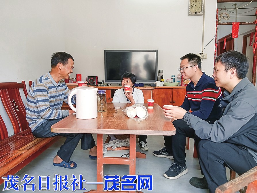 六定村委会朱山窝村群众(左)用六定水厂自来水煮茶招待镇、村干部。