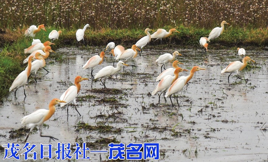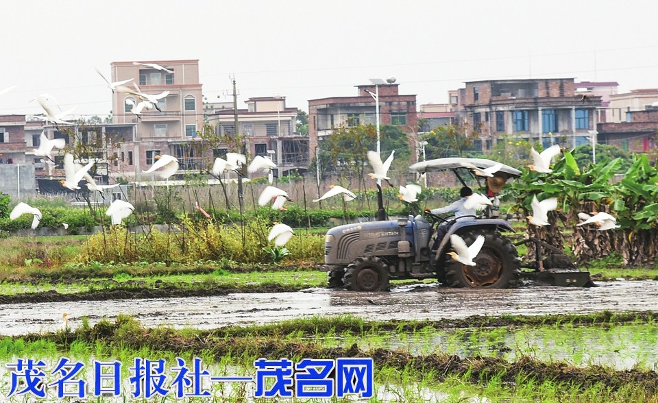 春耕时节,我市各地乡村田野一派繁忙。昨天,记者在茂南区羊角镇桥头村田野看到,农机在田里来回穿梭耕作,大群白鹭围着耕作的农机觅食,时而追着犁头翻飞,时而低飞盘旋,时而在田间度步,时而相互嬉闹,好一幅白鹭闹春耕美景图。