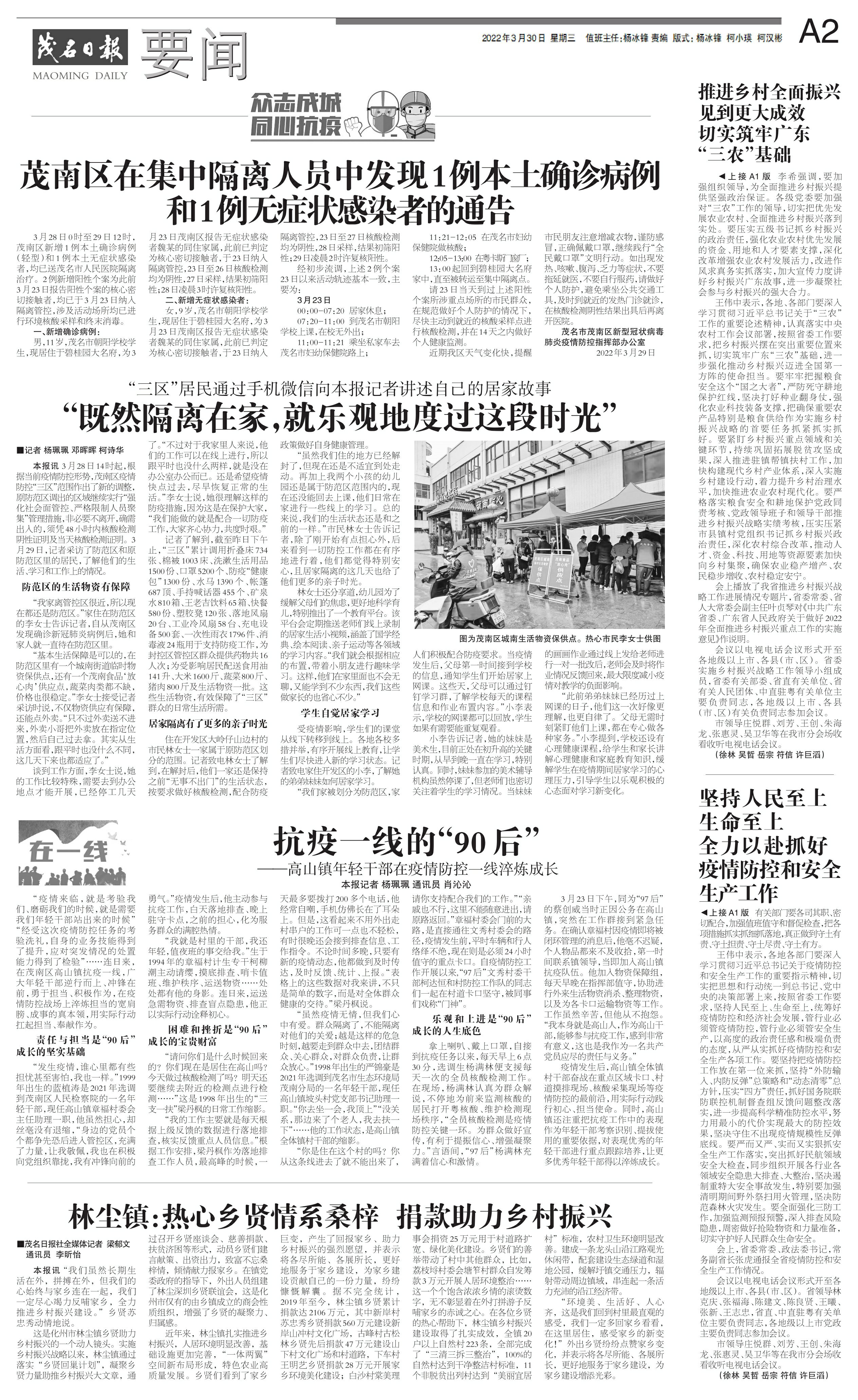 本报讯3月28日14时起,根据当前疫情防控形势,茂南区疫情防控“三区”范围作出了新的调整,原防范区调出的区域继续实行“强化社会面管控、严格限制人员聚集”管理措施,非必要不离开,确需出入的,须凭48小时内核酸检测阴性证明及当天核酸检测证明。3月29日,记者采访了防范区和原防范区里的居民,了解他们的生活、学习和工作上的情况。