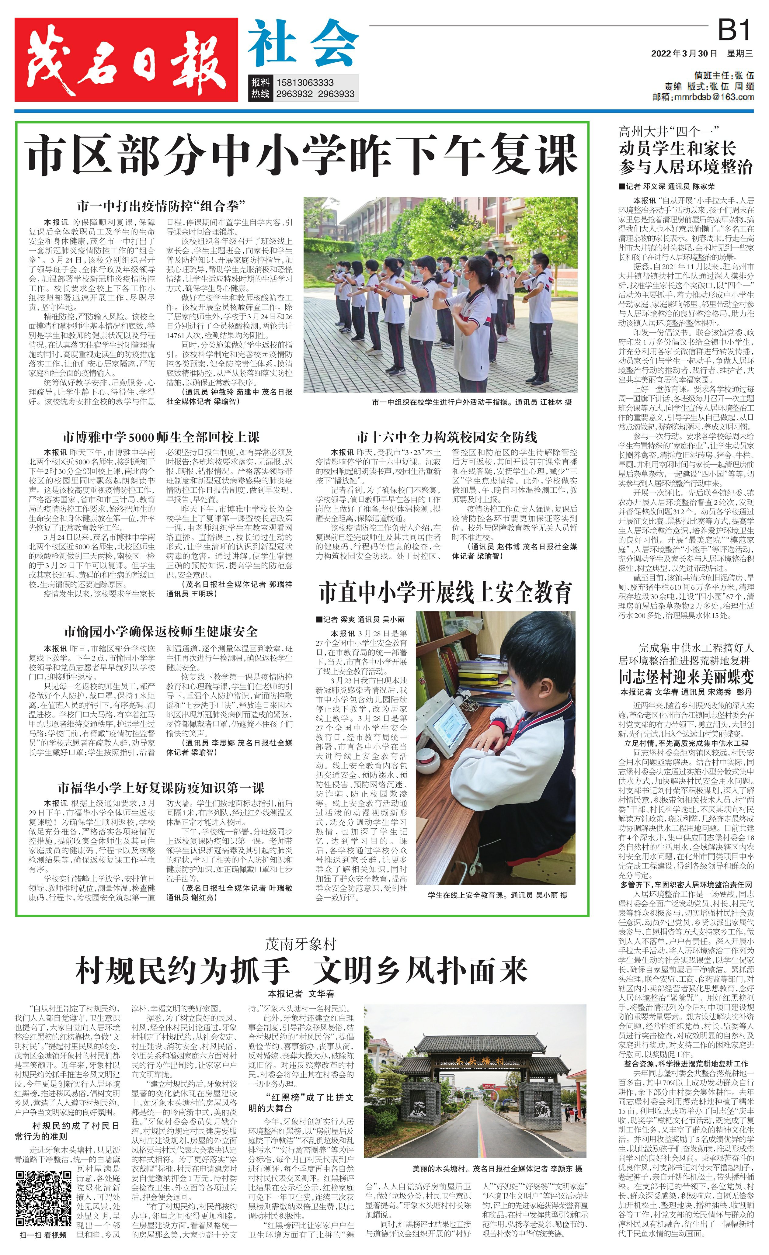 市区部分中小学昨下午复课