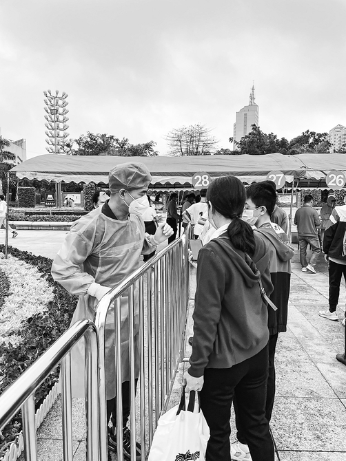 清明假期的第一天,老曹值了24小时班,回家才休息了半晌,4月4日中午又收到了电白突发疫情的消息。老曹迅速响应,再一次带队“征战”电白。这次疫情源头不明,形势严峻复杂,是一场硬仗,但是他丝毫不退缩。出发前,他带领队员们齐声喊了口号“共克时艰,茂名必胜!”作为一名退役军人,老曹深知要打胜仗,需要具备两个重要因素,一是强壮的体魄,二是灵活的战术。打好疫情防控阻击战,与时间赛跑是赢得胜利的关键,以快制快才能有效管控风险。这次出征电白,任务是完成某个小区全员核酸采样工作。老曹精心排兵布阵,指挥一部分队员负责引导群众、维持秩序,另一部分队员协助群众提前做好信息登记,用有限的人手,在2个多小时内高效服务了2000多人完成核酸采样。队员们常说,老曹骁勇善战,有他在就像吃了一颗“定心丸”。