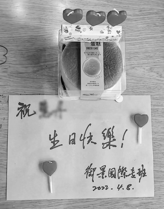 生日蛋糕送到隔离房间