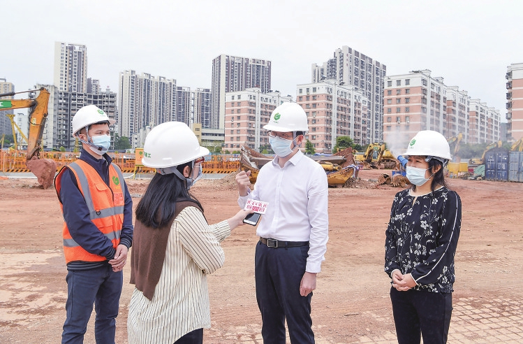 该项目施工单位广东省建筑工程集团有限公司现场负责人徐悦龙告诉记者,目前正在进行地下室基坑导墙和地连墙施工,地连墙总长约1169.6米,已完成地连墙约100米、导墙约580米。“现在的主要任务是严格落实常态化疫情防控工作,确保项目有序稳定推进,力争按期完成交工。”据了解,项目部严格按照省、市及住建部门的要求,施工现场从严实施封闭式管理,查验出入人员的行程卡、健康码、测温,并要求佩戴口罩;新进场员工需持48小时核酸阴性证明,进行健康码、行程码登记并签订个人防控责任书、个人承诺书,建立“一人一档”防疫记录;每天班前对工人进行安全及疫情防控交底,早晚两次测温;强化返岗参建人员流动管控,核实行程及健康状况;每周对重点人群(厨师、采购、保安等)开展一次核酸检测,对其他人员按照10%的比例进行核酸抽检;办公和生活区域保持通风,并定期进行消毒。