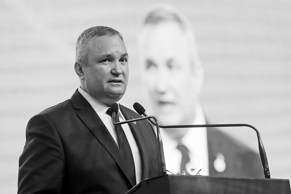 4月10日,在罗马尼亚首都布加勒斯特,罗马尼亚总理丘克在国家自由党特别代表大会上发表讲话。