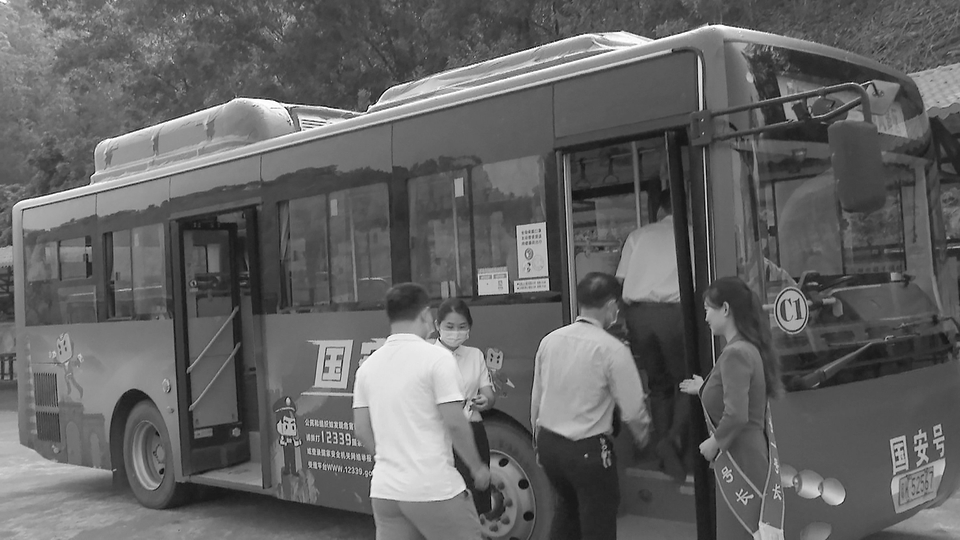 乘客登上高州市公交专车“国安号”。通讯员冯荣鑫摄
