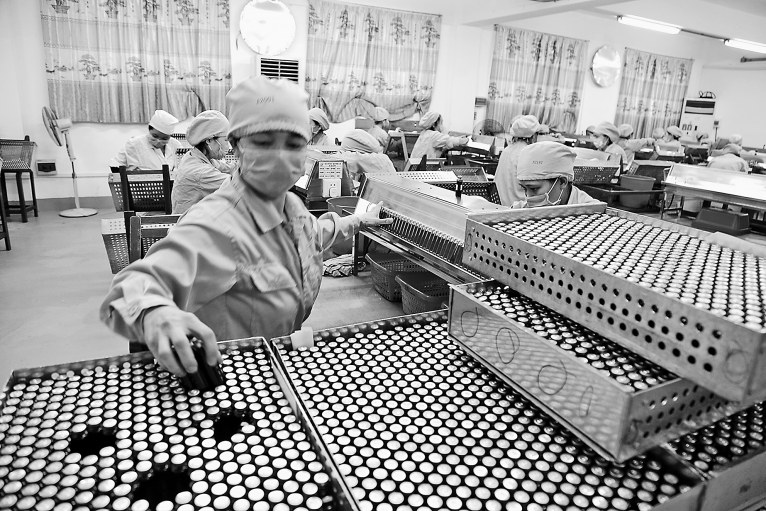 非常时期,一手抓疫情防控,一手抓复工复产。在香雪制药化州中药厂,工人忙于生产抗病毒口服液。茂名日报社全媒体记者岑稳摄