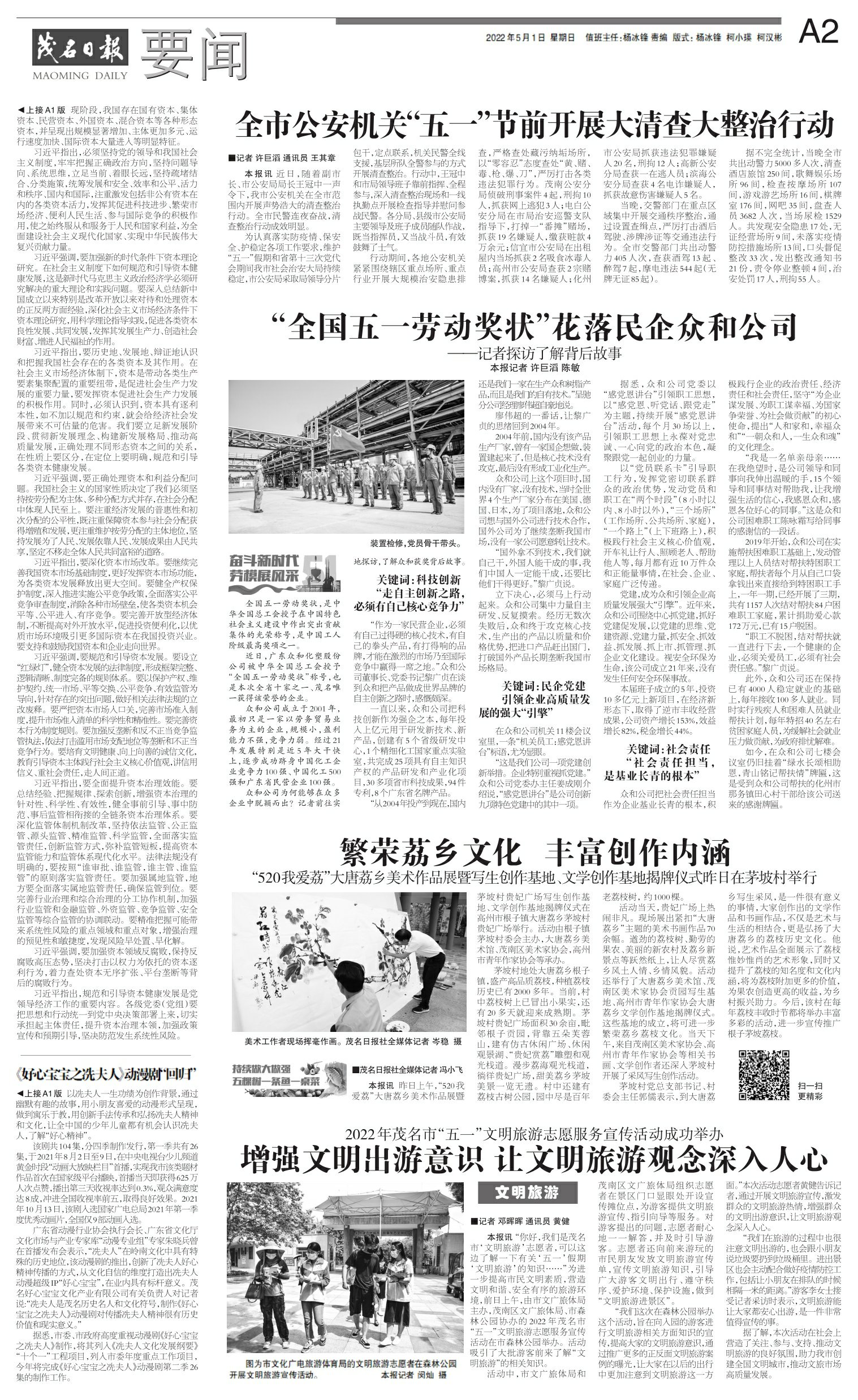 本报讯“你好,我们是茂名市‘文明旅游’志愿者,可以这边了解一下有关‘五一’假期‘文明旅游’的知识……”为进一步提高市民文明素质,营造文明和谐、安全有序的旅游环境,前日上午,由市文广旅体局主办,茂南区文广旅体局、市森林公园协办的2022年茂名市“五一”文明旅游志愿服务宣传活动在市森林公园举办。活动吸引了大批游客前来了解“文明旅游”的相关知识。