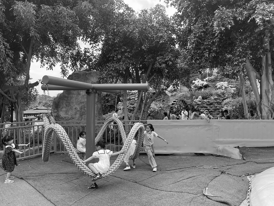孩子们在凤凰园里的游乐场玩得不亦乐乎。