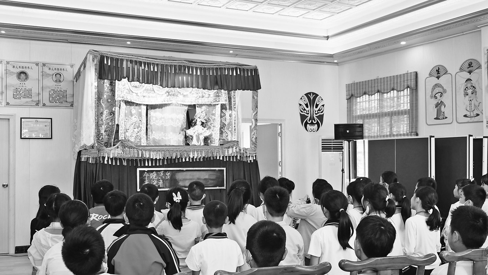 小记者们在观看木偶戏。
