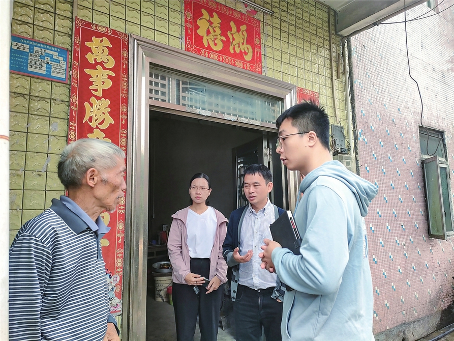 蔡林佐(右一)对脱贫户开展走访调查。