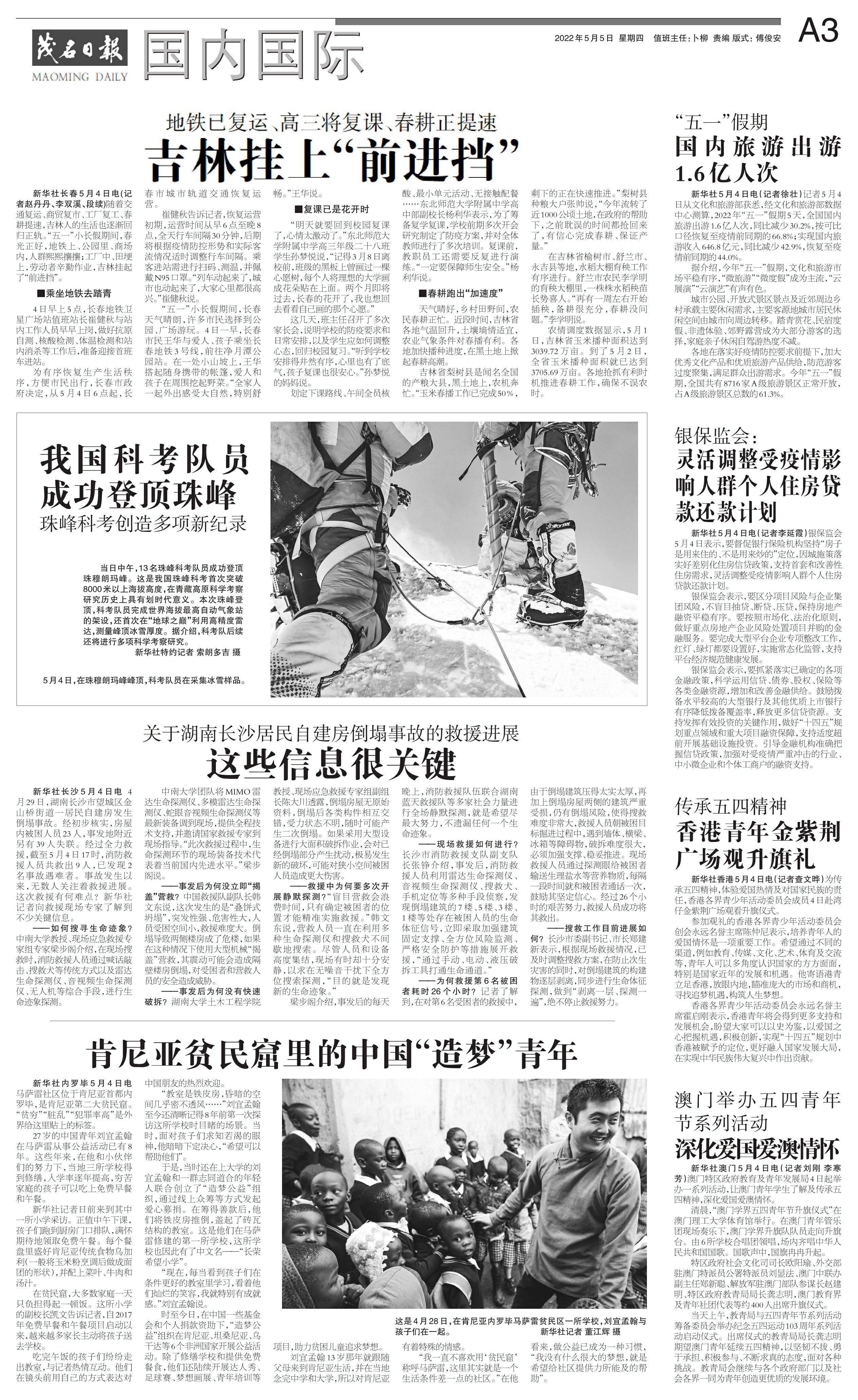 我国科考队员成功登顶珠峰