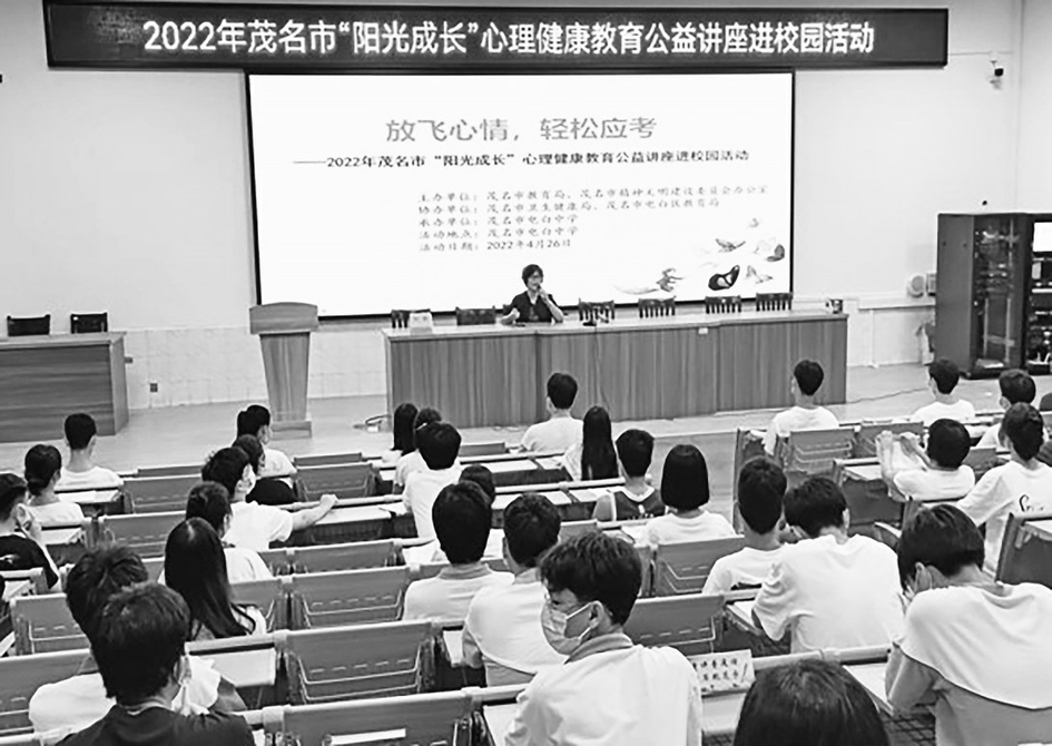 本报讯 近日,电白中学开展2022年茂名市“阳光成长”心理健康教育公益讲座进校园活动,本次主题为“放飞心情,轻松应考”。