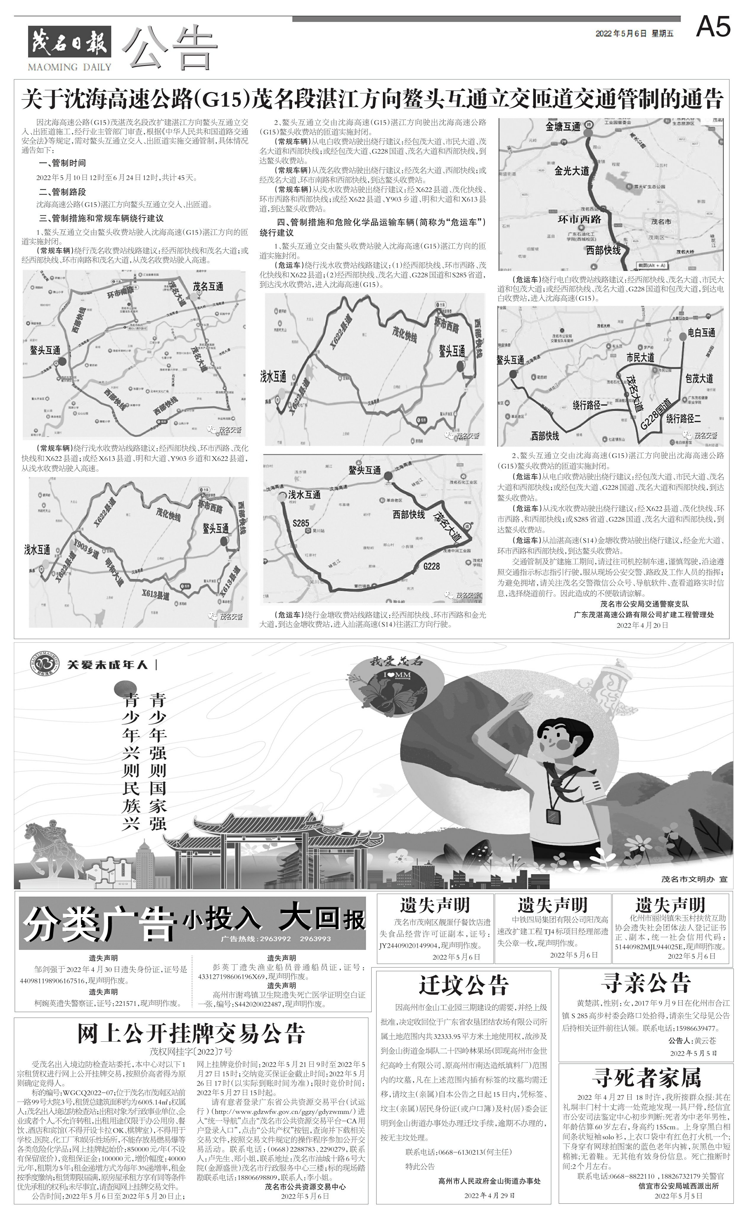 关于沈海高速公路(G15)茂名段湛江方向鳌头互通立交匝道交通管制的通告