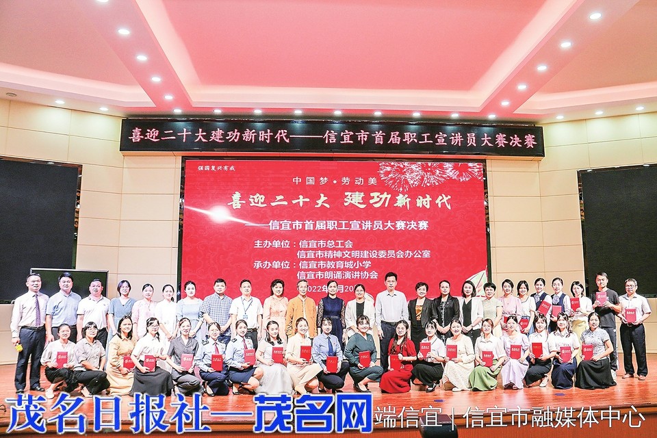 本报讯 近日,“中国梦·劳动美——喜迎二十大建功新时代”信宜市首届职工宣讲员大赛决赛在市教育城小学顺利举行。信宜市委常委、宣传部部长何秋菊,信宜市人大常委会副主任、总工会主席梁其金,信宜市副市长江立颖等领导为获奖选手们颁发了荣誉证书。